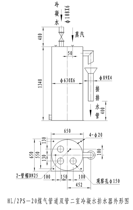 HL/2PS-20型煤氣管道雙管二室冷凝水排水器