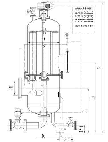7、本過濾器電氣控制部分采用PLC可編程控制器,清洗模式采用差壓控制、定時(shí)控制及手動(dòng)控制并聯(lián)模式,清洗程序采用定時(shí)定位模式,反洗耗水量小,清洗徹底;